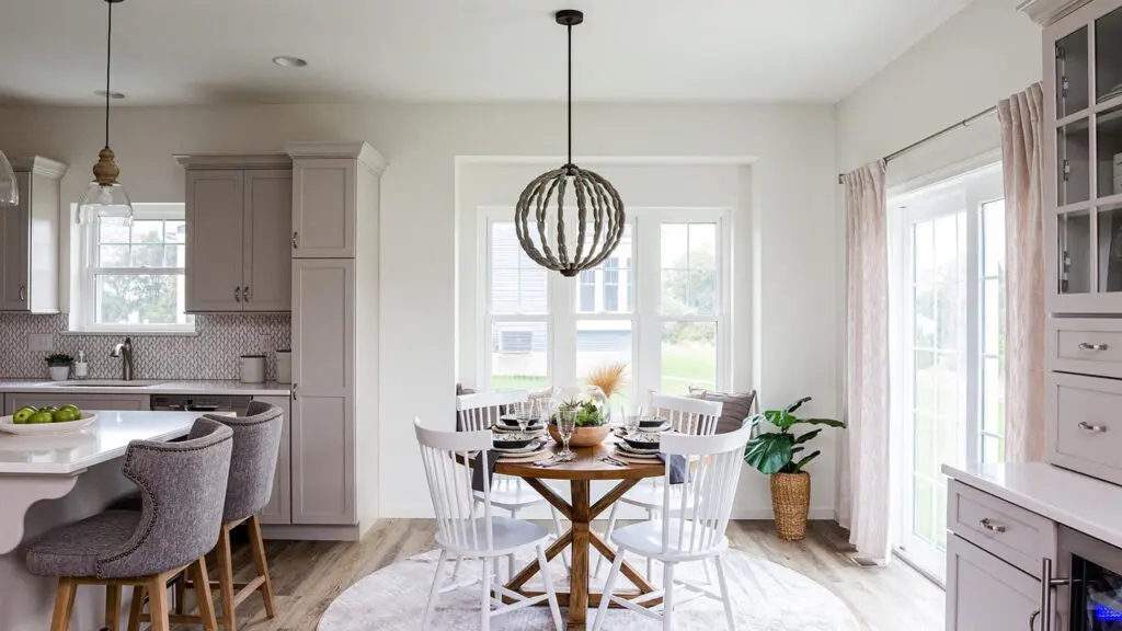 Choose a rug that mimics the shape of your dining table. Select one that is large enough to keep the legs of all chairs on the rug even when they are pulled out to ensure an easy way to and from the table.